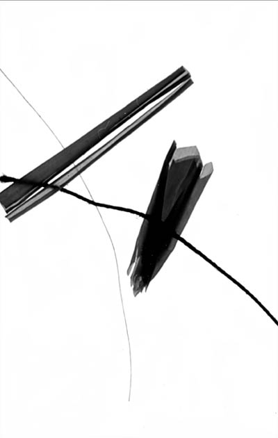Lichtzeichung (Bast, Nähgarn, Eigenhaar)