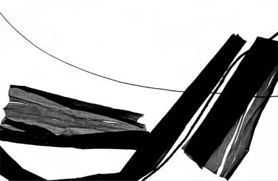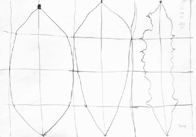 Lichtzeichung (Bast, Nähgarn, Eigenhaar)